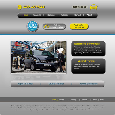 | Main Page | | Vehicles | | Accounts | | About Us | | Contact | | Airport Transfer Page | | Ports Transfer Page | | Control Panel | | Online Quotations | | Online Booking | | Online Payment | | | Price: £295 | | | | Monthly Hosting: £7.50 | | You can optionally add maintenance and upgrade to the above for an additional fee of £10 per month. | | Initial payment: £90 (inc VAT)